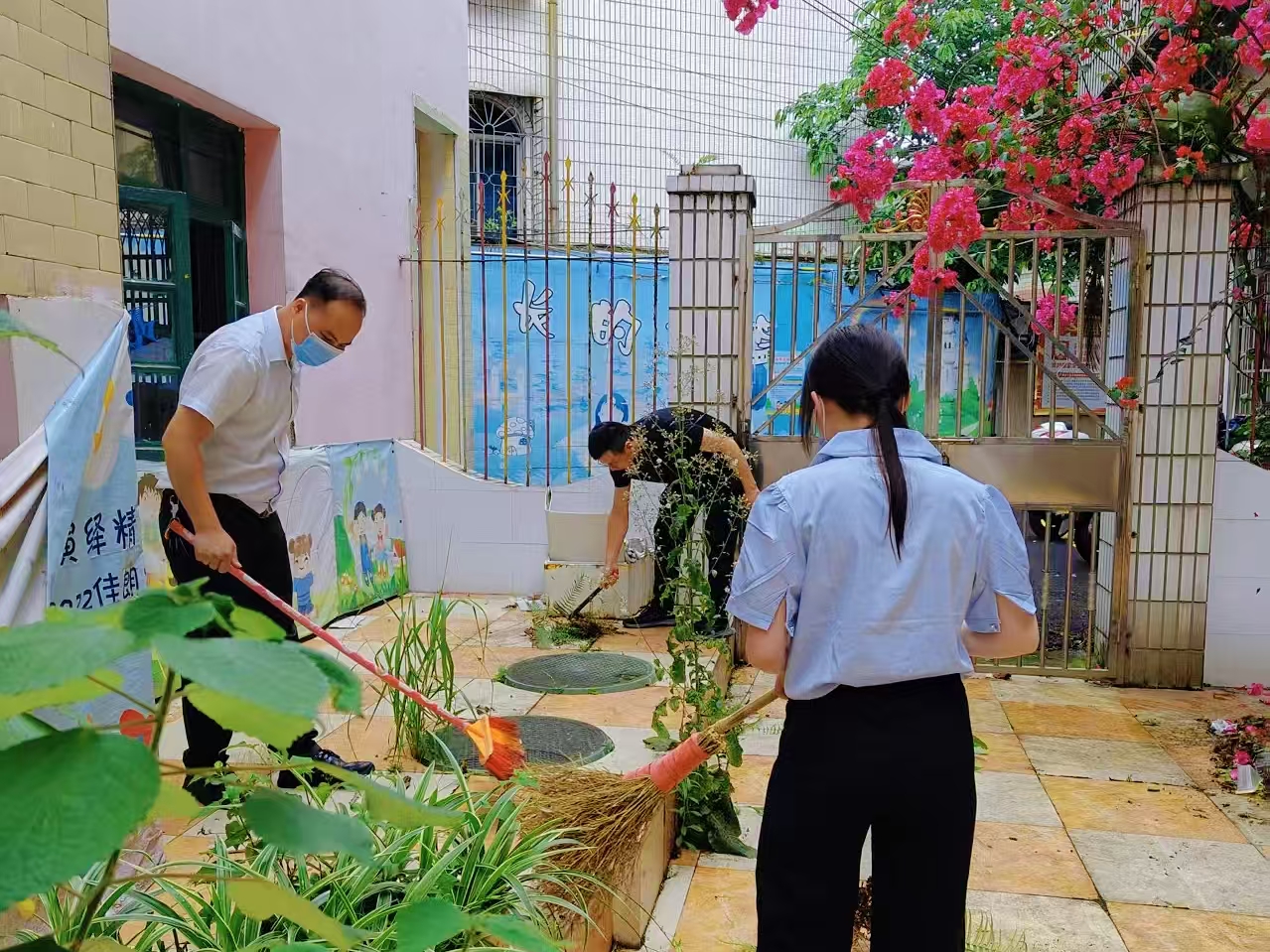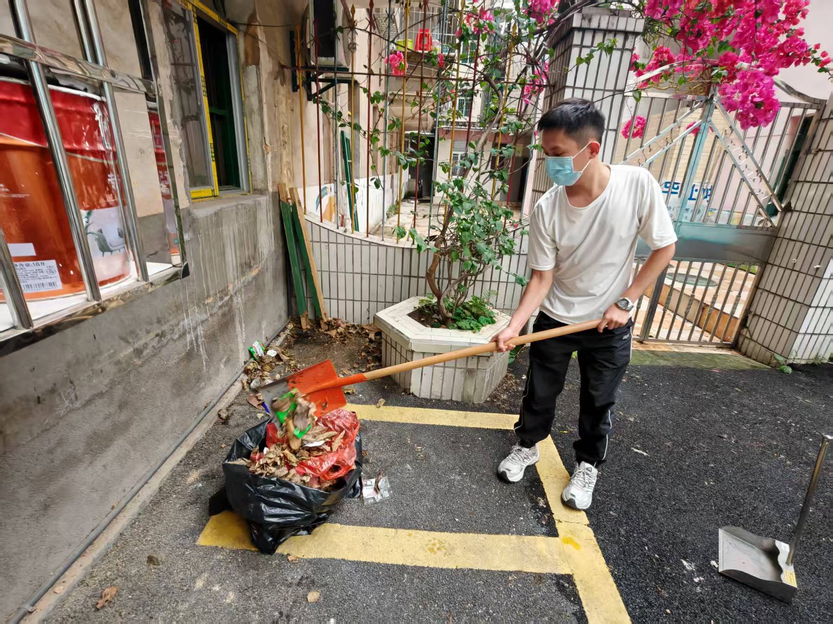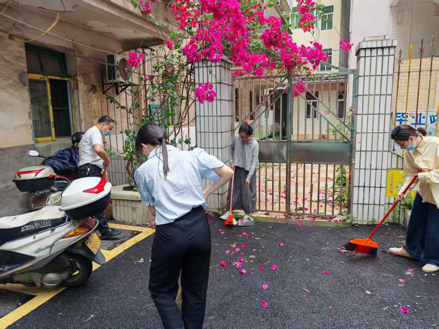 活动现场,党员和志愿者们分组协作,分工明确。有的负责清扫空地,清除庭院落叶和杂草;有的负责清理楼道杂物,畅通出行通道;还有的负责排查卫生死角,他们蹲下身子,用铲子仔细铲除墙角的青苔,用双手清理隐藏在沟缝的枯叶和垃圾。尽管天气炎热,汗水湿透了衣衫,灰尘沾满了脸颊,但党员和志愿者们毫无怨言,发扬不怕脏、不怕累的精神,认真细致地完成每项任务,积极为打造整洁干净的资产环境贡献一份力量。
